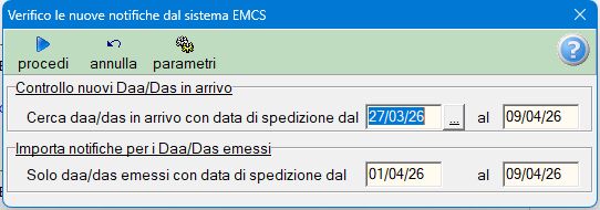 Questa gestione automatizza completamente il download e l’importazione dei files di notifica relativi ai DAA/DAS UE che vengono di solito prelevati di manualmente dal portale ADM nella sezione “Notifiche EMCS”.